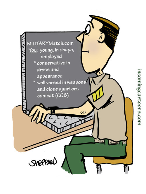 1026. Military Match Posted on 08 October, 2020 by jsheppard Reply When you think of it, you as a military person have many unique talents to offer someone on a dating site. Wishing you a safe week and staying well.