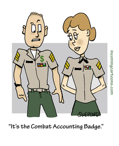 1024. Accounting Badge Posted on 25 September, 2020 by jsheppard 1 Everybody has to have a specialty badge these days. Pretty soon there’ll be the Combat Baking Badge … which reminds me of a cartoon idea! Have a great wekend and be safe out there.