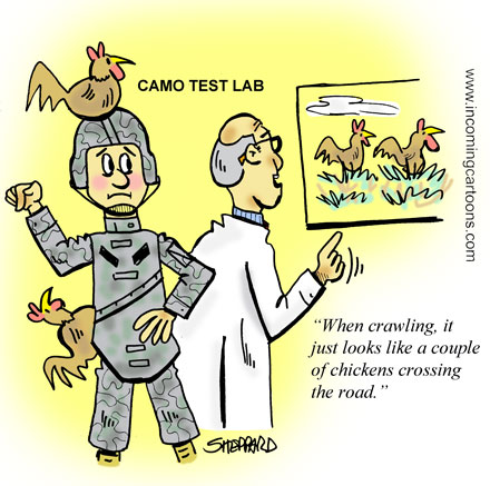 368. Chicken Camo Posted on 17 August, 2012 by jsheppard Scientists at various camo labs are always looking for that little edge. Sometimes its a very technical application, others its just plain good sense. Have a great weekend folks and be safe. Thanks for stopping by and please come back again!!!!