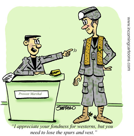 371. Lose Vest and Spurs Posted on 28 August, 2012 by jsheppard Hey … back from my 10 day vacation in Connecticut and Virginia. The carton is a few hours late since I needed a little more rest after the long drives!!! Enjoy the toon and thanks for coming back. New toon on Friday morning … see ya then.