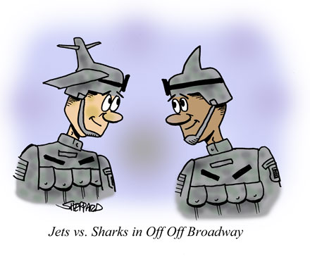 409. Jets vs. Sharks Posted on 08 January, 2013 by jsheppard The military comes to Broadway … it was only a matter of time. Let’s hope everyone had a great weekend and the upcoming/incoming week is a productive one! Thanks for stopping by!!!!