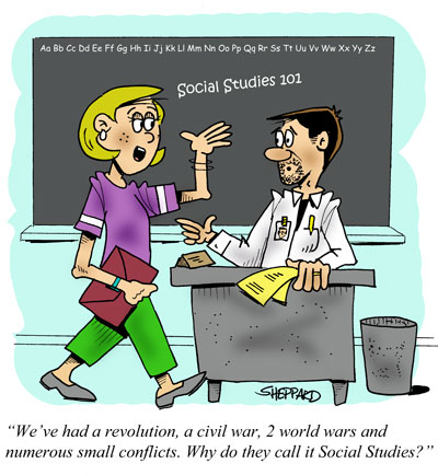 Ever wonder what the source of some words are? Social studies deals with studying wars and conflicts, ironic isn’t it? Why isn’t it the study of giving parties and event planning? The art of studying wars and conflicts could be warcraft … basic, advanced and grad school level. I guess its all above me.
